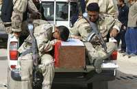 Compa�s de cuatro soldados iraqu� muertos por una motocicleta bomba lloran por sus camaradas ca�s FOTO AFP