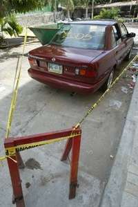 Uno de los vehiculos utilizados en los atentados contra m�os de vigilancia policiaca en Acapulco, Guerrero. FOTO Jos�ntonio L�