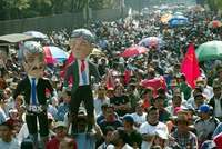 Queretaro, Qro., 5 de febrero. Más de 200 organizaciones integrantes del Frente Sindical, Campesino y Popular -encabezadas por los sindicatos Mexicano de Electricistas (SME) y Nacional de Trabajadores del Seguro Social (SNTSS)- cerraron filas aquí contra la política "entreguista" del presidente Vicente Fox; se comprometieron a parar cualquier reforma que proponga el Ejecutivo en detrimento de la Constitución y frenar las ambiciones de perpetuación en el poder de los neoliberales. Asimismo, anunciaron que empezarán a preparar el "segundo paro nacional".