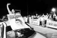 Cancun, QR, 6 de febrero. El candidato de la alianza Somos la Verdadera Oposición (PRD-PT), Juan Ignacio García Zalvidea, El Chacho, desafió los siete puntos de ventaja atribuidos a su rival, el priísta Félix González, en las primeras encuestas de Televisión Azteca y Mitofski-Televisa. A las seis y media de la tarde anunció su propia encuesta con una ventaja de nueve puntos por encima del tricolor y convocó a sus seguidores a salir a celebrar ''sin desórdenes ni violencia'' a la glorieta conocida popularmente como ''del Ceviche''.