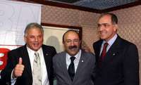 Los aspirantes a la presidencia de la C�ra de Diputados Virgilio Guimaraes y Luiz Eduardo Greenhalgh, del Partido de los Trabajadores, y Jos�arlos Aleluia, del Partido del Frente Liberal, poco antes de un debate en una estaci�e radio de Brasilia FOTO Reuters