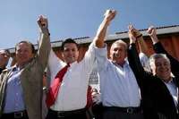 Toluca, Mex., 12 de febrero. Los más de 13 mil asistentes que llenaron la sede estatal del Partido Revolucionario Institucional (PRI) no fueron suficientes para cubrir la ausencia del líder nacional de este partido, Roberto Madrazo Pintado, durante el acto donde Enrique Peña Nieto rindió protesta como candidato al gobierno del estado de México. El abanderado del tricolor sólo fue arropado por los ex gobernadores de la entidad; por Francisco Labastida Ochoa, aspirante perdedor a la Presidencia de la República en 2000, así como por el hidalguense Manuel Angel Núñez Soto,...