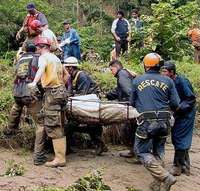 Rescatistas trabajan en M�da, al sureste de Caracas, para auxiliar a las v�imas de las intensas lluvias FOTO Afp