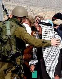 Un soldado israel�mpide el paso a un palestino, en el puesto de revisi�e Qalandia, al oeste de Ramallah, Cisjordania FOTO Reuters