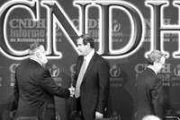 Ante el presidente Vicente Fox, que escuchaba con el rostro enrojecido, el titular de la CNDH planteó que empezar a aprender a discutir públicamente e impulsar un mejor clima de interlocución "requiere confrontar posturas sin intentar borrar las diferencias. Para instaurar nuevas prácticas discursivas y argumentativas, hay que aprender a polemizar y vencer las arrogancias''.