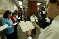 Al filo del mediodía, con el repicar de las campanas de la Catedral Metropolitana, secretarias, asesores, funcionarios y, en ocasiones, diputados suspenden sus labores y se dirigen, todos los días, a la biblioteca José Angel Conchello Dávila para rezar El angelus, encabezados por Felipe de Jesús González Camarena, secretario del coordinador del grupo parlamentario del Partido Acción Nacional (PAN) de la Asamblea Legislativa del Distrito Federal (ALDF), José Espina von Roehrich.