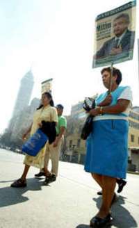 Militantes del PRD participan en la caravana Danos tu mano contra el desafuero, en el Hemiciclo a Ju�z FOTO Mar�Luisa Severiano