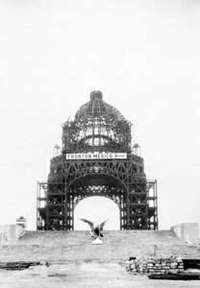 Diseñada por el arquitecto Emile Bernard, quien inició en 1898 la obra, que originalmente estaba destinada a ser la sede del Congreso, y que se abandonó 13 años después debido a la Revolución. El armazón metálico fue realizado por la compañía estadunidense Milliken Brothers; en 1933, fue aprovechada por el arquitecto Carlos Obregón Santacilia en la edificación del actual Monumento a la Revolución; éste se concluyó, sin inauguración oficial, el 20 de noviembre de 1938. Sobre la escalinata descansa el águila de bronce que remataría la cúpula y que nunca fue colocada. Se encuentra en el Monumento a la Raza