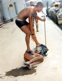 Imagen captada en mayo de 2003 que sirvi� evidencia en la corte marcial de Osnabrueck que enjuici�conden�dos soldados brit�cos por torturar a civiles iraqu� presos FOTO Reuters