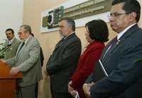 Octavio Romero, Bernardo Batiz, Alejandro Encinas, Estela R� y Joel Ortega, durante la conferencia de prensa en la que informaron sobre la situaci�e la empresa Eumex FOTO Mar�Mel�rez Parada