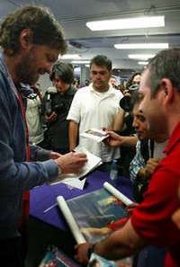 Emir Kusturica, durante la firma de aut�fos realizada ayer en la Librer�Gandhi FOTO Carlos Cisneros