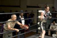 Los dos personajes amenazan con ser un cliché: Frankie es el sabio veterano, rudo por fuera pero con un gran corazón; Maggie es la luchadora que viene de abajo para demostrar su capacidad. Y ambos desarrollarán una relación de padre e hija, precisamente para suplir sus respectivas carencias. Sin embargo, hay una honestidad emocional en su interacción que evita cualquier efecto de lugar común. Dicha honestidad está anclada también por las actuaciones. Swank resulta muy conmovedora entre su ansia por complacer y el ejercicio de una determinación casi ciega, mientras Eastwood muestra una vulnerabilidad y una dimensión trágica aún más sorprendentes que en Los imperdonables. (Cabe apuntar que los personajes secundarios no la libran tan bien. Un aspirante a boxeador con taras mentales, o la aprovechada familia white trash de Maggie sí responden a un trazo esquemático).