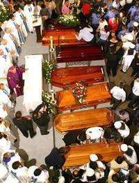 Misa de cuerpo presente del gobernador Gustavo Alberto V�uez Montes y de sus colaboradores, en el jard�Libertad, frente al palacio de gobierno de Colima FOTO Notimex