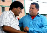 El l�r del movimiento cocalero boliviano, Evo Morales, asisti� programa dominical del mandatario venezolano, Hugo Ch�z, Al�residente FOTO Ap