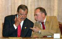 El presidente Vicente Fox y el representante de la sociedad civil de la Uni�uropea, Juan Moreno, durante el acto de la canciller�FOTO Guillermo Sologuren