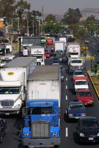 Aspecto de la calzada Vallejo, donde al igual que en otras vialidades del DF se observ�te martes circulaci�ormal de transportes de carga, pese al programa implementado por las autoridades capitalinas FOTO Yazmin Ortega Cort�