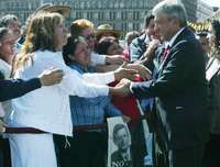 El jefe de Gobierno del DF, Andr�Manuel L� Obrador, saluda a beneficiarios de microcr�tos para el autoempleo, al t�ino del acto realizado ayer en el Z�o capitalino FOTO Mar�Melendrez Parada