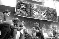 Los l�res campesinos Federico Ortiz, Lorenzo Isidro, Juan Chavez, Felipe Chavez y Eva Castaneda discuten la autonom�de Paracho Foto Ivan Sanchez