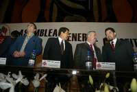 Asamblea contitutiva de la Federaci�emocr�ca de Sindicatos de Servidores P�os en el Polyforum Cultural Siqueiros, el 27 de febrero de 2004 FOTO Carlos Ramos Mamahua