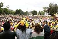 Reunidos en el Jardín Cuitláhuac, numerosos líderes de organizaciones antagónicas se manifestaron ayer en favor de evitar que, por un criterio eminentemente político, se deje fuera de la contienda presidencial de 2006 a López Obrador.