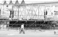 Estructura para colocar el relieve de Siqueiros, que ser�rasladado de la colonia An�ac a la Plaza Ju�z en el Centro Hist�o FOTO Marco Pel�