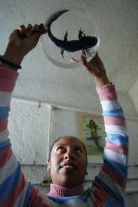 En la Universidad Aut�a Metropolitana se realizan las investigaciones para salvar de la extinci�l ajolote de Xochimilco FOTO Marco Pel�