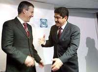 El nuevo coordinador panista en San L�ro, Jos�onz�z Morf� y el dirigente nacional del blanquiazul, Manuel Espino Barrientos FOTO Guillermo Sologuren