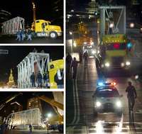 Secuencia del recorrido de Velocidad, relieve creado por David Alfaro Siqueiros en 1953. El desplazamiento de esa obra se efectu� madrugada de este jueves a bordo de un tr�er de cama baja que parti� Lago Alberto con destino final en la Plaza Ju�z del Centro Hist�o FOTOS Jos�arlo Gonz�z