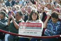 En la gr�ca aparece un grupo de personas que acudieron ayer a la Plaza de la Constituci�donde Andr�Manuel L� Obrador encabez� ceremonia en la cual se entregaron cheques de apoyo para adultos mayores FOTO Mar�Mel�rez Parada
