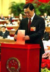 El presidente chino Hu Jintao, al emitir su voto en sesi�el Parlamento FOTO Reuters