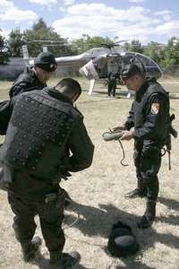Polic� preventivos estatales permanecen en el hangar de la corporaci�n espera de que concluyan las investigaciones sobre el linchamiento del polic�Aurelio Blas Vicente FOTO Ezequiel Leyva