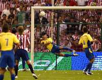 La zaga americanista nada pudo hacer para evitar la reacci�el Guadalajara FOTO Marco Pel�