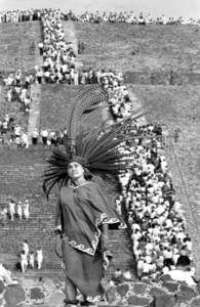 Miles de personas ocupan la escalinata de la Pir�de del Sol para festejar el equinoccio en Teotihuac� Imagen de archivo/Jes�llaseca