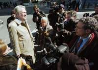 Bernard Ebbers, de 63 a� rodeado de reporteros, tras haber sido encontrado culpable del multimillonario fraude en WorldCom FOTO Reuters