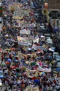 Aspecto de la marcha realizada el pasado d�8 en Tuxtla Guti�ez, en la que participaron maestros, trabajadores del gobierno estatal y organizaciones sociales y campesinas FOTO Victor Camacho