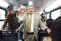 López Obrador hizo ayer un recorrido a bordo de uno de los vehículos articulados