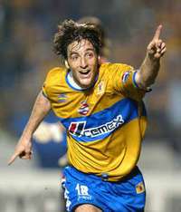 El felino Sixto Peralta celebra su gol con que el equipo mexicano se hab�puesto adelante 2-1 FOTO Reuters