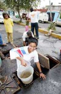 En Santa Cruz Meyehualco, delegaci�ztapalapa, los colonos se han surtido durante varios d� de las tomas de agua que est�en las calles FOTO Alfredo Dom�uez