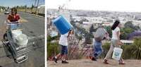 Habitantes de varias colonias de Iztapalapa padecen la escasez de agua. En Santa Cruz Meyehualco, izquierda, los residentes se�n que deben esperar hasta 15 d� para recibir dotaci�e los camiones cisterna. Mientras, vecinos del cerro de la Estrella, en la imagen de la derecha, tienen que acarrear el l�ido desde puntos lejanos FOTO Francisco Olvera