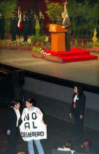 El desafuero, terminó diciendo en su discurso, permitió "medir a los verdaderos demócratas" y contemplar el verdadero rostro de los "simuladores que se quejaban del 'fraude patriótico', pero ahora vociferan a favor de lo que conciben, en su fundamentalismo de derecha, como un 'desafuero patriótico'. No cabe duda que su verdadera doctrina es la hipocresía".