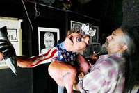 El artista pl�ico Arturo Ram�z observa una de las figuras que ser�incineradas este S�do de Gloria, durante la tradicional quema de Judas. En esta ocasi�Ram�z eligi�este cerdo para representar al presidente de Estados Unidos, George W. Bush. Las esculturas se realizan en el Centro Cultural Jos�art�en Ciudad Nezahualc�l, el 22 de marzo de 2005. Foto: Jes�llaseca