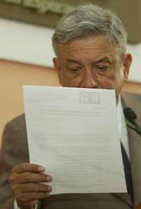 El mandatario capitalino, Andr�Manuel L� Obrador, durante su conferencia de prensa de este mi�oles FOTO Mar�Mel�rez Parada