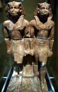 Estatua doble del fara�iuserra, cuya antig�data de 2 mil 390 a�AC, una de las 152 obras que componen la muestra Fara�OTO Francisco Olvera