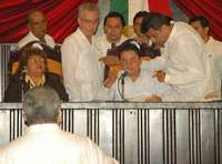 Chetumal, QR, 24 de marzo. En una agitada sesión, las bancadas de los partidos Acción Nacional (PAN), de la Revolución Democrática (PRD) y del Trabajo (PT) se apoderaron de la mesa directiva del Congreso local, instalada este jueves, a dos días de que el gobernador Joaquín Hendricks Díaz entregue su último Informe de Gobierno. Los hasta ahora opositores consideraron éste como el primer paso rumbo al control del Congreso local, que sin excepción estuvo en manos del PRI desde la creación del estado, en 1974.