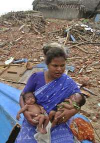 Imagen de archivo de Sathya con sus mellizos, nacidos en Akkarapettai poco antes del tsunami FOTO AP