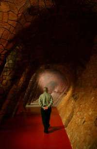 Como en un túnel del tiempo, la mirada de los visitantes se centra en una sección del viaducto del Parque Güell, de 5.60 metros de largo por 4.50 de alto y cinco de ancho; el efecto de perspectiva y de secuencia visual es impactante.