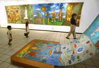 Sin embargo, la atención al mundo complejo, implacable y violento de los adultos se ha olvidado del universo infantil. De todo eso que no dicen los periódicos, que ignoran el radio y la televisión, nos informa la exposición Murales de la frontera norte, abierta en la Sala Cristina Payán del Museo Nacional de Culturas Populares.