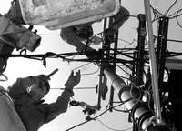 Electricistas dan mantenimiento a un transformador en el estado de M�co FOTO La Jornada