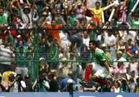 El brasile�aturalizado mexicano Antonio Naelson Sinha festeja su gol anotado a la escuadra estadunidense, en el Azteca, ante 100 mil espectadores FOTO AP