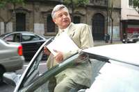 El jefe de Gobierno, Andr�Manuel L� Obrador, al salir del antiguo Palacio del Ayuntamiento, donde ofreci� conferencia de prensa FOTO Mar�Mel�rez Parada